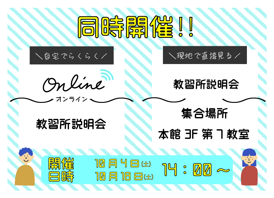10月4日(土)、10月18日(土)に教習所説明会を開催します!