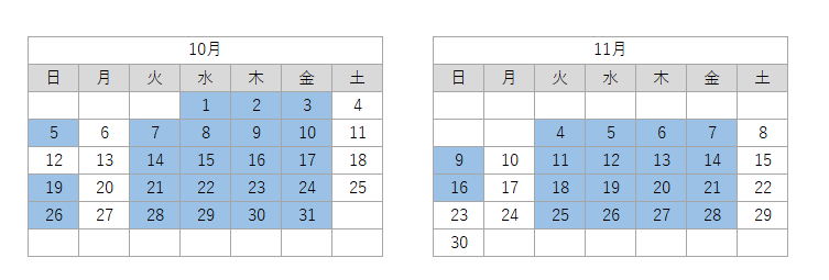 <青色が実施日です>