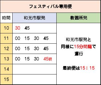 下記のフェスティバル専用便を除き、通常の送迎バスは終日運休となります。ご注意ください。
